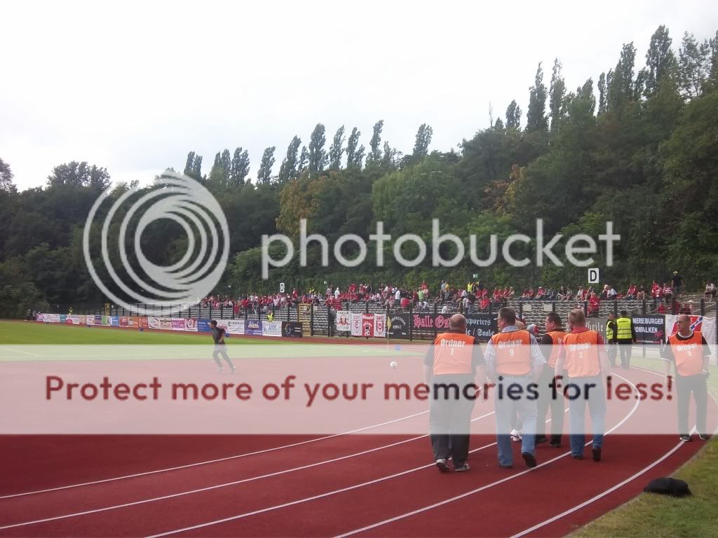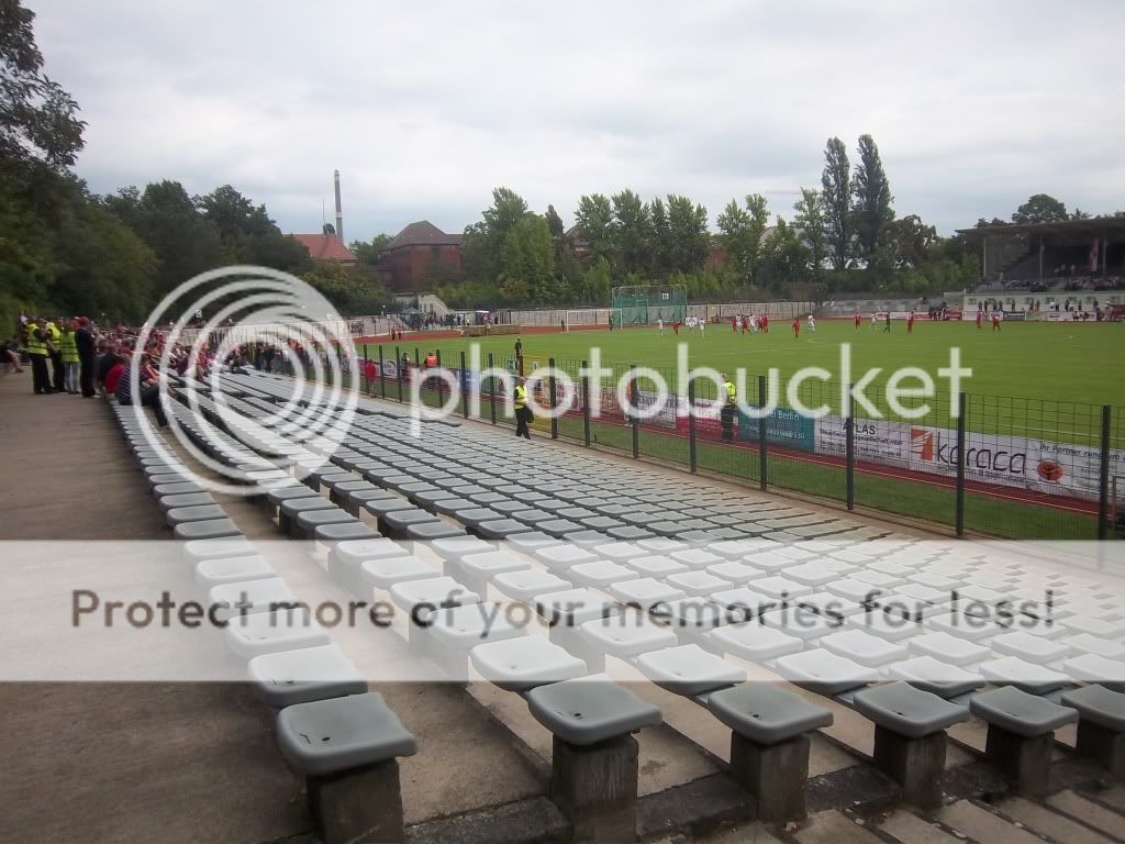 Der Auswärtsauftakt für meinen Club sollte anstehen, eigentlich ein ganz normales Spiel und eigentlich fehl am Platz in einem Blog wo ich nicht objektiv über die eigene Leistung schreiben möchte und kann. Doch am heutigen Tage hatten sich nun mal wieder einige Sachen ereignet, die man so nicht hinnehmen kann und will. Doch zunächst mal zu den einfachen Sachen. Das Poststadion stand schon lange auf meiner Liste, umso schöner, dass der HFC nun einmal hier spielt und ich mir die Gammelspiele des Vorgängers von Ankaraspor ersparen kann. Die Tribüne wurde schön renoviert, schade, dass die oberen Reihen nicht noch die alten Sitzplätze beherbergen. Auf der Gegengerade hat man komplett Sitzschalen montiert und in den Kurven hat man neuere Stufen mit Wellenbrechern. Sehr hübsch anzuschauen und erstaunlich ist außerdem der Anblick der alten Wellenbrecher und Stufen, welche man noch im Gestrüpp findet. Toll, dass die Obrigen der Mafia vom DFB noch Erbarmen mit derart kleinen Vereinen hat. Das Spiel hatte mein Club voll im Griff. Das Siegtor fiel bereits in der 9.min und auch so hatte Berlin kaum eine Möglichkeit zum Erfolg zu kommen. Insgesamt ein besserer Arbeitssieg, aber so ist das wenn man gegen einen Aufsteiger spielt und als Favorit dasteht. Stimmung gab es nur in der zweiten Hälfte, denn man betrat das Stadion spät und hatte sowieso null Motivation hier noch freizudrehen nachdem man wiedermal gezeigt bekam, dass die uniformierte Armee unter staatlichem Schutz tun und lassen kann was sie will. Hier und heute konnte man wieder Verbrechen gegen die Menschenwürde registrieren und der dumme Berliner Pöbel applaudiert recht fleißig. Ein Armutszeugnis ist es außerdem, dass man auf staatlicher Seite rumheult es sei gefährlich Beamte mit Nummern auszustatten. Wie man sieht geht es doch ganz leicht, die Nummer tauschen oder entfernen und dann den Frust in Form von Knüppeleinsatz und Pfefferspray ablassen. Von solch asozialem Pack soll man sich beschützt fühlen? Von einer Armee Hauptschüler die es wiedermal schafften den Graben zwischen Polizei und Fans tiefer zu graben!? Nunja die aufwendig hergestellte Choreo wurde dennoch gezeigt und auch der Support ging wenn auch nur vom harten Kern getragen Richtung Spieler über. Wie die Leistung nun war sollen wie immer andere entscheiden, ich jedenfalls war froh als an diesem Tag die Sonne unterging und ich unter die Dusche konnte.