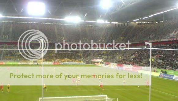Ein 0815 Bau welchen es dutzende Male im deutschen Lande gibt, wie gesagt nicht mein Fall. Das Spiel war ganz gut für dritte Liga. Viele gute Spielzüge und klarste Chancen auf beiden Seiten, wobei Dynamo immer einen Tick efektiver war. So ging Dresden auch verdient in ührung und verwaltete den Vorsprung bis zur Pause. Fortuna kam mit viel Gift aus den Kabinen und hatte beste Möglichkeiten zum mitlerweile verdienten Ausgleich gehabt, doch wollte der Ball irgendwie nicht rein. Erst in der Nachspielzeit und nach gefühlten 15 Ecken hinterander stocherte man den Ball zum viel umjubelten Ausgleich ins Tor. Als einer unserer Mitfahrer Anti Dynamo Lieder anstimmte erntete man aber blos blöde Blicke der Bonzen auf der Tribüne, auf die wir uns mitlerweile geschlichen haben. Die Stimmung im Stadion war jederzeit höherklassig als die Liga vermuten dürfte. Fortuna hatte zwar nicht unbedingt den kreativsten Support, aber immerhin versuchte man immerwieder das ganze Stadion einzubeziehen. Wenn auch zum xten Mal mit dem Fortuna Wechselgesang. Insgesamt in Ordnung, doch würde man sich wünschen, dass die Lieder länger gesungen werden. Lächerlich fand ich hingegen die zwei Typen die ca. 20g Rauch aufsteigen ließen und sich einen drauf abfeierten hehe. Der Punkt in Sachen Stimmung ging also eindeutig an Dynamo meiner Meinung nach. Man ließ sich hinterm Tor im Oberrang nieder und hatte eine große Blockfahne samt Dynamologo nach unten hängen. Sah schon sehr fett aus wie geschlossen und brachial man Stimmung unters Volk brachte. Im Gästeblock war nie Ruhe und auch die Kreativität war durchaus vorhanden. Ein bisl Pyro in Form von etwas Rauch stieg dann auch noch auf, was aber keinen so sonderlich störte. Nach dem Spiel machten wir uns diesmal etwas gemütlicher zurück zum Parkplatz und man amüsierte sich noch recht herzlich über das ganze Kuttenpublikum welches sich ja unbedingt die Ossis schnappen wollte :D Nach dem man sich herzlichst ausgeweint hatte ging es zurück in die Heimat.