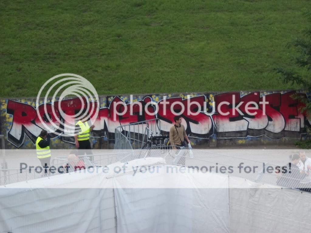 bereits Teil des Bauschutts für das neue Stadion was hier entsteht. Zum Glück standen die vier fetten Masten noch und auch die alte Fankurve wo nur noch ein Westkurveschild rausprangert hatte ihren gewissen Charme. Blöd fand ich nun außerdem noch, dass Essen eine Choreo zum Abschied vor hatte. Ich hatte einfach keine Lust in Mitten dieser Choreo zu stehen, lieber wollte ich ein schickes Bild davon haben. Gott sei Dank hat mein Freund Tobi(die besten Grüße) einen perfekten Platz auf der Tribüne und zum Teil sind anliegende Bilder auf seinen Mist gewachsen. DANKE DAFÜR! Das Stadion war nun voll und trotzdem standen noch tausende Menschen vor den Toren. Ich hatte das Gefühl das wird hier und heute mein Ende sein. Ich glaub so ein Gedrängel hat es zuletzt in Duisburg gegeben. Das erweckt schon das Gefühl, dass man im Ruhpott wenig Ahnung von Organisation hat. Wie bitte kann man 12000 Tickets für ein Stadion verkaufen wo meiner Meinung nach nur 10000 reinpassen? Naja. Kurz bevor ich einen Kollaps erlitt, verließ ich die Kurve, das heißt ich versuchte es. Nach dem es aber zwei Leuten gelang mich rauszuziehen aus den Massen war mir das Ausmaß bewusst denn draußen auf dem Vorplatz lagen bereits 3 Menschen die von Notärzten