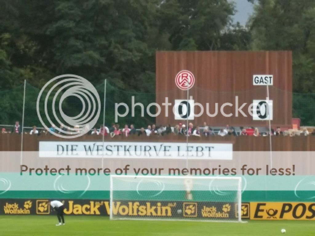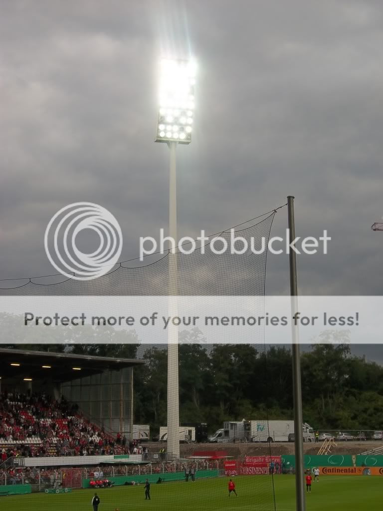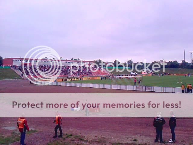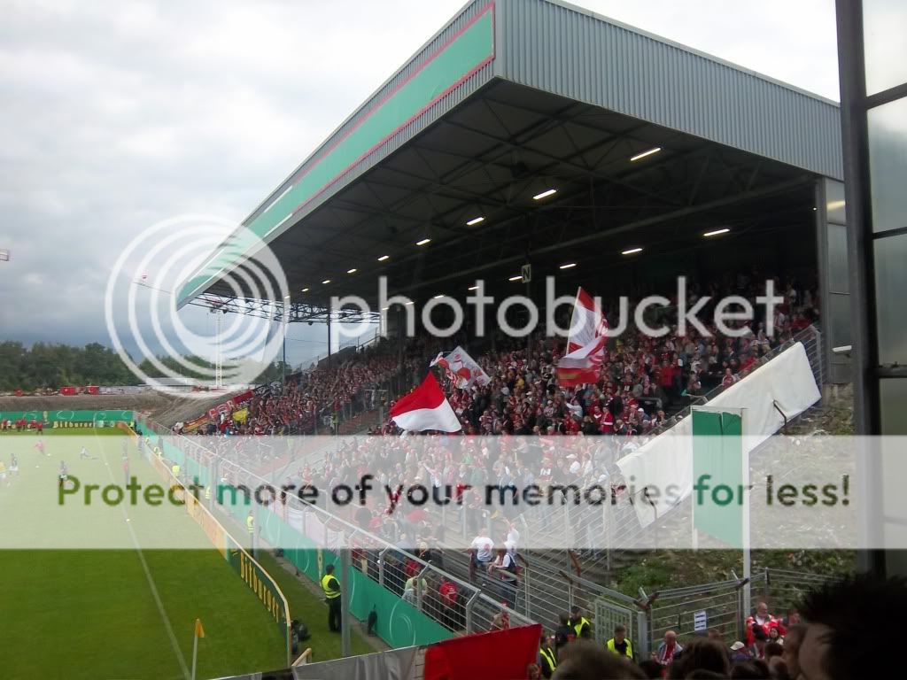 Erste Runde DFB Pokal und wiedermal ist es ein Paradies für Hopper, denn man kann das eine oder andere Stadion voll erleben sowie guten Fussball sehen. Die Partie zwischen Essen und Union dürfte nicht die schlechteste Wahl gewesen sein, haben beide Vereine doch eine gute Szene und zudem verabschiedet sich mit dem Georg-Melches-Stadion demnächst der nächste charmante Ground von der deutschen Stadionlandkarte. Es sollte der letzte Kick in diesem Stadion werden und dem entsprechend hat man es auch riesig beworben. Ich dachte mir also nichts wie hin und die Viererbesatzung für das Auto war auch schnell gefunden. Zur Mittagszeit trafen wir uns nun am halleschen Bahnhof ehe uns der erste Schock des Tages ereilte. Unser Fahrer hatte den Abend zuvor einen Verkehrsunfall und lag im Krankenhaus(gute Besserung Alex!!). Blöd eben, dass man sich nicht nur nen Kopf um seinen Freund macht. Jetzt stiegen Spritkosten an und man fand ebenso auch keinen vierten Mitfahrer. Zudem hatte man nun nen Benziner statt nem Diesel unterm Arsch, was meine klammen Kassen schon etwas schreien ließ. Doch was solls, man ist nur einmal jung, dieser Ground musste noch fallen und so ging es Richtung Ruhrpott. Ohne Probleme und nur mit kurzem Stau erreichten wir Essen und nach einer kleinen Stärkung hatten wir nun die Karten in Empfang genommen bevor es zum Stadion ging. Hier war schon ein munteres Treiben und als wir das Innere erreichten ereilte uns prompt der nächste Schock. Die Karten waren für die Fankurve von Essen was mich nun endgültig zu dem Entschluss bringt keinem mehr zu vertrauen wenn es um Kartenbestellungen geht(bestimmte Personen ausgenommen). Ich machte das Beste draus und begutachtete den Ground. Es existieren nur noch drei Tribünen mit Dach denn die eine Hälfte ist