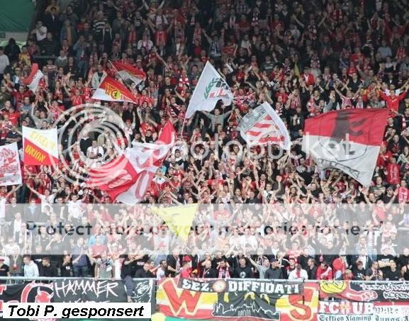 behandelt wurden. Krass! Nun gut ich habe mich an die Seite gestellt und beobachtete das Spiel von dort. Essen drückte die ganze erste Hälfte und ging auch in Führung. Zur zweiten Hälfte hatte Union klar mehr vom Spiel doch Essen konnte tatsächlich auf 2:0 erhöhen. Wie aus dem Nichts kam Union jedoch zum Anschluss und drückte permanent auf den Ausgleich. Gelungen ist dieser in der zweiten Minute der Nachspielzeit. Ziemlich bitter, hatte Essen doch sehr leidenschaftlich gekämpft. In der Verlängerung ließen es beide Teams ehr ruhig angehen ehe es der Torhüter von Essen mit zwei glänzenden Paraden im Elfmeterschießen krachen ließ. Somit siegte Essen und die Hütte stand Kopf. Auch so war die Stimmung jeder Zeit bemerkenswert gut. Essen hatte wie erwähnt eine Choreo zum Abschied des Stadions. Diese hatte einige Schönheitsfehler, sah aber trotzdem nett aus. Die Lieder waren ganz cool und abwechslungsreich. Es gab viele Klatscheinlagen und auch der Rest des Stadions zog gut mit. Union hatte zu Beginn ein paar Schwenker und ordentlich Krach zubieten. Die Stimmung hier habe ich allerdings insgesamt schon besser gesehen. Zum Teil waren nur die Ultras um das WS zu hören und die Lautstärke ließ viele Wünsche offen. Insgesamt ging der Punkt an Essen, welches auch schlagkräftiger war. Wärend des Spiels kam es hinter dem Stadion zu kleineren Scharmützeln was die Bullen abe auch wieder schnell unter Kontrolle hatten. Dennoch ein Kulturschock für mich, hat doch jeder Hallenser einen Privatbeamten zu Auswärtskicks ;). Diese Tour hat sich insgesamt gelohnt, auch wenn ich immer noch brechen könnte, dass wir mitten im Block standen und die Kostengrenze doch um einiges höher war als ich kalkuliert habe. Danke an Lars für die komplette Fahrt als einziger Fahrer und für den Verzicht auf Bier ;) und Danke noch mal Tobi für die Fotos welche diesen Bericht noch etwas abrunden konnten.