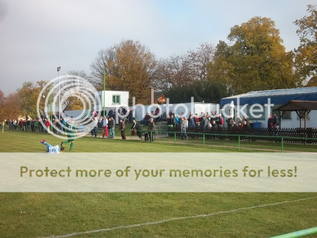 Nach dem enttäuschenden Vortag war es für mich Zeit mal zu akklimatisieren und ein Dorfkick im idyllischen Schafstädt war angesagt. Bereits im vergangenen Jahr sollte das Germania Stadion einen Besuch von mir erwarten, doch stand ich damals vor verschlossenen Toren. Der Winter wird sicherlich auch in diesem Jahr Einzug erhalten, so aber nicht heute. So machte ich mich mit öffentlichen Verkehrsmitteln Richtung Merseburg und von dort nach Schafstädt. Vorbei am Industriestädtchen der Bunawerke und Schkopau erreichte ich das Dörfchen in dem man eine Stecknadel fallen hören konnte. Hier traf man sich noch mit Martin, der diese Region eigentlich stolz als seine Heimat bezeichnen könnte wenn er will. Am Ground angekommen erblickten wir das sehr schicke und zugleich vergammelte Eingangstor und für zwei Euro inkl. Abrisskarte konnte man den Sportplatz betreten. Hier findet man auf einer Seite ein paar Stufen sowie einige Sitzgelegenheiten. Der Rest ist Wiese und besteht aus abgeholzten Bäumen. Sehr chillig hier und vor Allem ist man hier sehr freundlich zu einem. Die meisten der alten Herrschaften kamen nicht klar als wir unsere Kameras zückten um Bilder zu machen. Immer wieder ein Erlebnis ;) Ich wiederum kam nicht drauf klar als plötzlich ein mir bekannter Hoppe