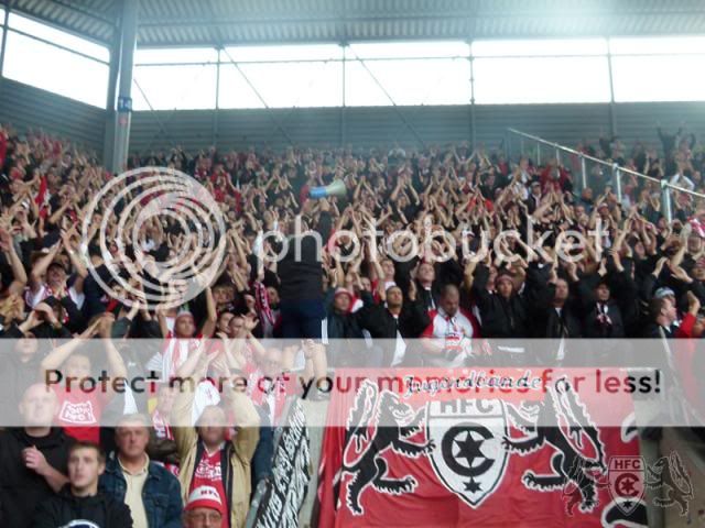 Wie öfter erwähnt berichte ich nicht gerne über eigene Kicks, aber ich habe mir vorgenommen in Zukunft doch mal den einen oder anderen Text zu verfassen, seien die Spiele auch noch so sinnlos. Das Derby meines Clubs gegen die verhassten Blauen stand an. Das Vorgeplänkel fand wie immer auch in diesem Jahr statt und konnte eine gute Show erahnen lassen. Leider war es für mich nicht möglich den Zug zu nehmen und so ging es also mit den Fanbussen zum Stadion. Schlimm. Ich war froh als ich angekommen bin. Die Blechbude ist eigentlich wie immer keine Erwähnung wert und auch jeder dürfte sie bereits kennen. Mir gefällts hier natürlich immer noch nicht aber das ist auch kein Wunder. Zu Beginn des Spiels erblickten auf beiden Seiten Choreos das Licht der Welt und auf beiden Seiten dürfte man es ehr als Mittelmaß bezeichnen, was man hier zu Gesicht bekam. Genauso erwähnenswert wie das Stadion ist auch das Spiel gewesen. Wenn man wirklich was erreichen will, kann man gegen eine derart schwach aufspielende Mannschaft wie MD ruhig mal einen Sieg mitnehmen. Aber anscheinend hat man nicht wirklich verinnerlicht um was es in dieser Saison geht. Verstanden haben das wohl auch nicht alle mitgereisten Hallenser im Gästeblock und somit müsste man fast darüber nachdenken den Stimmungspunkt an MD abzugeben. Wirklich objektiv urteilen kann man darüber nicht deswegen verlier ich auch keine weitere Zeile darüber. Als diese Grottenvorstellung endlich ein Ende fand bewegte sich ein großer Teil finstere Gestalten von der Gegengerade zum Gästeblock. Am Ende blieb nur das Pöbeln hinter den Reihen der Cops und ein paar Fackeln sowie Böller tauschten die Seiten. Hier ist aber nichts groß passiert, nur im Heimblock nahm man das eigene Stadion auseinander und versuchte sich in Riot Aktion gegen die mit ordentlich Pfeffer beladenen Cops. Zusammengefasst kann ich für mich nur sagen, es war zwar eins der besseren Derbys was die letzten Jahre betrifft. Was davon kaufen kann sich hier aber dennoch keiner.